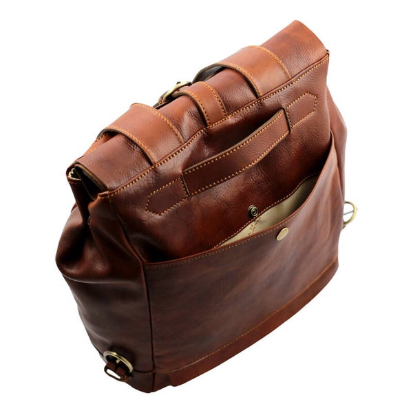 Das Santiago - Modell ist ein Rucksack aus echtem braunem Leder, das sowohl in der anfänglichen Bräunungsphase als auch im letzten Moment der Nähte und Oberflächen handgefertigt ist. Das Leder, mit dem es produziert wird, ist natürlich und italienischer Herkunft: eine dicke und widerstandsfähige Haut, um den Rucksack mit der Zeit ohne das Risiko, dass er ruiniert wird, dauert. Der Rucksack signierte Fantini Pelletteria ist mit einem Schnappverschluss mit einem eleganten Riemen ausgestattet. Die Schultergurte sind verstellbar und breit. Auf diese Weise ist die Verwendung des Rucksacks viel bequemer und einfacher, insbesondere wenn es sich um ein Zubehör, das den ganzen Tag getragen wird. Die Funktion, die diesen Artikel zu einer der am meisten geeigneten und gekauften Funktionen macht, ist die interne Kapazität, die von den zahlreichen internen und externen Taschen weiter erweitert wird, die mit Reißverschlüssen ausgestattet sind. Dieser erstklassige Rucksack ist in seinem Stil unverkennbar, auch seine Qualität zusammen mit Schönheit und Komfort. Sie machen es zu einem Accessoire, auf das Sie nicht mehr verzichten können!